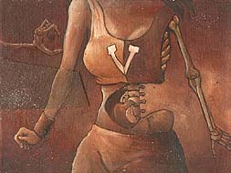 Living Dead (phallic building burns behind her like a feeble replay of an