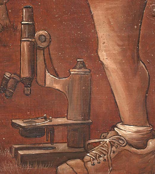 over-and-done B-Hollywood-action flick). Beneath her foot is the Microscope