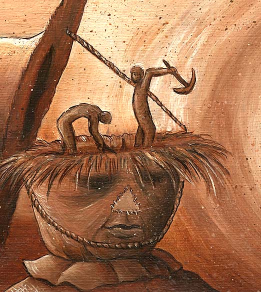 | Migraine and his girlfriend Listen; Farmer while you till these fields, To the soft compression a mere image yields, Thanks be to mind, when ripe for the picking, Glory rain that spells, sown seed is tricking, A theme that seems to stem lush acre, Only two dig: the Harvester and the Undertaker. A third less known, less made in the shade, Grows from the rows, obscenely displayed, Stuffed tuft in old clothes, defeats with a pose, Simulacrum sacked, paradigm supposed. How he gets the job done, is any fools guess, With a hole for a soul, in a crucified rest, Lucky for flying, it don’t take much brains, Birds of a feather have never thought of such things. With Gunnysack tact, propped up to defend Your bloom as it ‘shroom, separated from stem, Although he may look it, there’s no dim to his wit Day and night every season, his stitched grimace stay fit, So bring on the lush, and the dry winds of fate, Construct an effigy of him so his story relate, Tip your hat sharecropper, show respect to him sire And leave your matches at home so he doesn’t catch fire Chadwick James (poet/singer/songwriter) Tucson AZ Migraine and his girlfriend I'm not very good at knocking on wood, or even with luck it seems, in fact anything just hurts my head. Ever since meeting migraine and his girlfriend, I think I'd rather be dead. It all started in a country pub one night when I called a man out for a fight. A stranger. His eyes were black as coal, his tongue like red-steel to me, he was the devil's favourite, I swear beloved by a witch and then when I hit him with a mighty left his bottom lip did split. As he bled, there was 'something' he said that sent a shiver down my spine. The witch cast a spell over me , made me drink the cider strong, I loved the stuff, was it rough but that goes without a song. And in the morning when I awoke a mouth full of straw. fragmented limbs slowed me down and I was tied high up on a pole. My inside were ripped away as if to bare my soul. Through me you see, in fields, the bales of straw and one arm dropped in a sling. But worst of all the small people opened up my mind with pick and shovel time. To the syncopated beat of the devil's band they created a noise so loud I couldn't stand . And such is the curse I'm in a kinda quiver. The birds, you see, have eaten me, pecked away my spirit, my heart and liver. -Cleveland W. Gibson, (Author of Billabongo) Faringdon, United Kingdom |