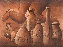 The Humanities The Humanities: Half a Man Band Alone he stands. The voice in his mind plays a whimsical song of goals and dreams, Placing them in a delusioned state of attainability. Choosing song over insanity, hope over failure, He is stuck with a flag of success, To be someday planted on the surface of his moon. Wonderment strikes him like deafness, Why he is falling apart to the tune of his own song, And yet he cannot move, Nor does he wish to stay In a field of dying dreams As he decays From the curse that is knowledge that he should succeed, The wear of survival without living, And the fear of leaving part of himself behind, Encompassed by frail and brittle clay jars, Only longing to be easily shattered, Like the dreams he once was certain would grace his gentle flowing fingers As they strum a final song of vindication, And the chill of autumn evening air That would flow through his hair Like freedom That it seems he will never know. For this the chicken mocks him, His beady eyes glazed over with ignorance Of the wind through his feathers, And of the curse of half a man. -Amy Piccinino, St. Louis, Mo The Humanities Screaming to Liberate I cry out as the torture runs endlessly through my head. This pain is my own, I keep it locked up inside so that no one can see. I am numb to my own suffering. However, there is redemption and healing through the music my torture has composed. No one can hear, because no one is allowed to hear. I own my pain. Silent suffering sealed by my lips, trapped in these jars I call myself. This companion of mine, confusion~ is kept within the confines of my own mind so that it can be protected. I am a slave to this thing you may call monstrous. To me this beauty of morbid form is the antidote to the poison of the mores, taboos and stigmas that society has forced upon us. In love with this eloquent pain you call horrid grief. My scream is my liberation. My music is the testament of independence, which many of you will never know. Out of the ashes I rise, only to fly. From pain freedom is borne. -Rosemary Porter Goodyear, AZ, (Project contribution from Footsteps to Oxford) The Humanities: What do you think? My mind is screaming to be heard As I play my sad song Wishing with fool's pride for peace I crave to be free as a bird The empty bottles and empty dreams are reminders of days gone wrong Plugs shut me off from myself.. I wish I could fly Keeping my ears as a hostage The flag whispers of peace near by Detached with eyes closed. I feel no hope left to salvage And yet I can't stop my sad music Afraid of myself and the contents of my screaming mind I don't want to face my false gimmick Wish I wasn't so chicken and could rewind Wish for full bottles at my feet Wish I could stand tall and play a different song Wish peace was more than a flag of defeat Wish I was together as one With rocks in my chest My heart is stone I have stopped breathing and feel the grip of the hex Mute and breathless I can barely stand alone The song comes from my head But I only play from my fingers.a song without a word With no breath left.Am I dead? My mind is screaming to be heard Sheri Phillips Canada (Project contribution from Footsteps to Oxford) Oh, The Humanities! Things would be easier, now, had there been some kind of event. Had it happened on a Sunday afternoon in a four-poster bed with the TV on in the background; or even if it had been a mistake. A mistake is a thing you can point to. There would have been evidence: a stain on the upholstery, a broken prophylactic. We would say somebody came inside somebody else and drama ensued. Stories like that make sense. They happen all the time. But things were more complicated (of course they were complicated) and whatever happened happened in the dark. Who can say, now, who spoke first? Who dove in? Who watched from the sidelines with night-vision goggles, timid and wrapped in a sweater? And now, a period of gestation. What are we waiting for? Fruit or a monster? A monster, for sure. Some ancient-looking thing. Some freakish amalgam of parts, born with a full set of teeth and two or three types of privates. Kathryn Rose Siegel Halifax, Nova Scotia, Canada (Project contribution from Footsteps to Oxford) Humanities! There is pain. Isolation and oblivion which removes all else. Exploding like a joy rattling in the chest. Lost in between the staggering moments of categorized tears. Classify. Cauterise. Stagger without walls unreached, nodding to voices unheard as you shut the world in: No. I was. No. I... am. No. What? No. I was.... No. I... am... No. No. I... am... No. What? Please. Please. No. I am... No. ... thinking. Reymund Nei, London, United Kingdom (Project contribution from Footsteps to Oxford) Humanities: I Hang Out With a Bad Crowd Mom always tells me that I don't listen. She says I hear, but I don't listen. But she doesn't know that when she talks eighteen other people start to talk. Then, interestingly enough I begin to sing. I feel like I'm floating in a sea of balloons when suddenly a flock of freakishly large geese tear through. They pop all of the balloons in their track while laughing hysterically. Eight voices start ordering me to dance like a drunken chicken. I oblidge. I start singing Marilyn Manson's rendidtion of Sweet Dreams. I hear my mother's clouded voice questioning my actions. But I can't respond because four other people are telling me that I really need to pick up the pace and two more are requesting new songs. I scream at them and tell them to take a number and they scream back at me in a language that I can't comprehend. At this point I have little control over my body. I feel separated from my senses. I wake up fourteen hours later with a guitar under my arm and a slew of empty bottles by my side. My mother says that I'm too young to be acting in such a manner. She grounds me for a week. Little does she know that when she grounds me she grounds eighteen other people. And those eighteen other people act o