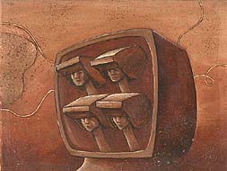 Virtual Communication Keyboard types on a bed of nails To the rhythmic dance of seven emails. Email; voice mail; chain mail, click. Snails mail; proxy mail; virtually every trick. Viruses; Screen dumps; bytes and bits - Learn your sign language from a virtual kit. Clone yourself; emboss yourself, then duplicate your image. It’s communication Jim, but not as we know it. Tricia Murphy, Oxford, England (Project contribution by Footsteps to Oxford) Virtual Communication: Cybernetics What are we running from? Where are we running to? What needed to be changed? Do I recall? Do you? Were typists’ jobs so dull? Was writing really hard? Did pocket change weigh more Than that four-hundredth card? Now that we are strapped in So safe, so tight, so fast, We’ve chosen not to let Our heads turn toward the past. The monstrous fun-fair ride Lurches top-heavily. The view’s directly down. Half-closed eyes dizzily Consider whether huge Robotic racers’ feet Can ever walk to plain Old jobs across the street. Now, flattened to a crush Against the harness bars, We envy those who’ve kept To motor-bikes and cars. These lines precisely fit on this computer’s screen. Kate Peters, Gate City, Virginia (Project contribution by Footsteps to Oxford) |